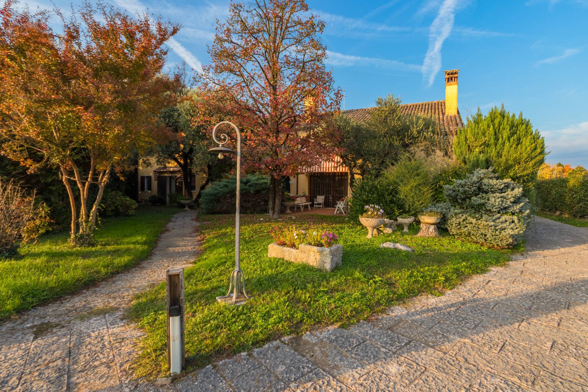 Completano la proprietà una caldaia a condensazione, quattro split a pompa di calore, garage, posti auto coperti, magazzini e un ampio giardino piantumato, che regala privacy e serenità.