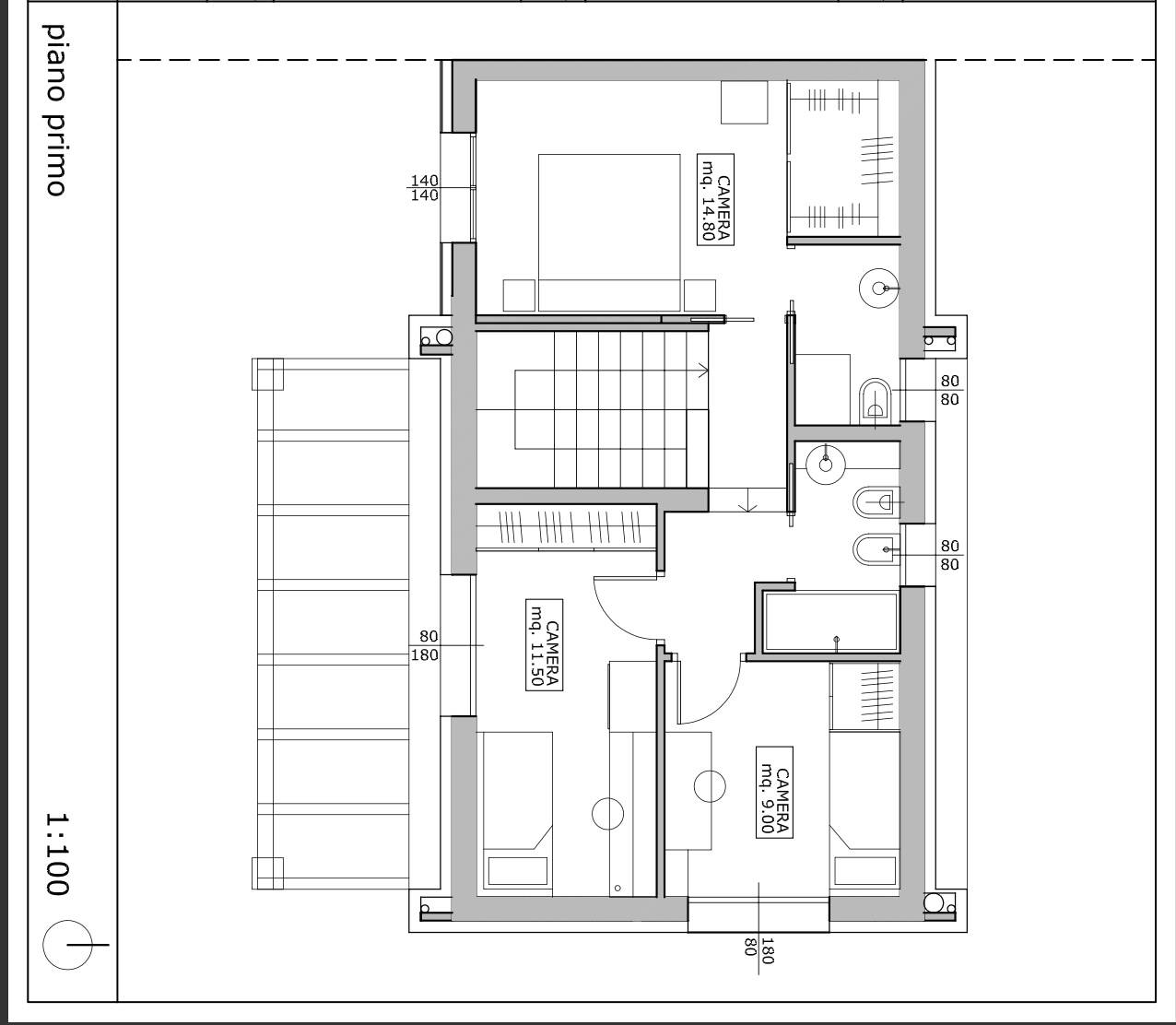 La zona notte, situata al primo piano, include una camera matrimoniale con bagno privato e terrazzino, due camere singole e un secondo bagno.