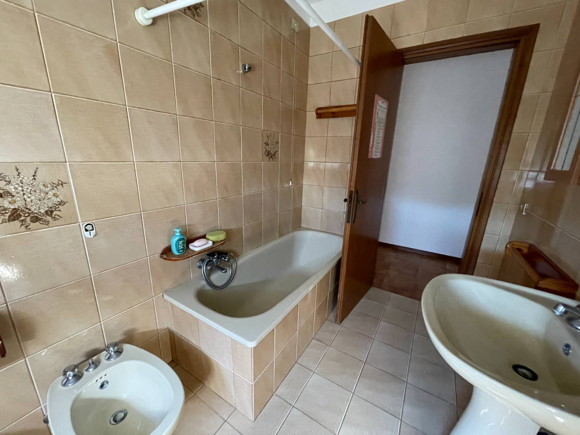 Un comodo corridoio separa la zona giorno dalla zona notte, quest'ultima composta da una camera doppia, un bagno dotato di vasca e una camera matrimoniale.